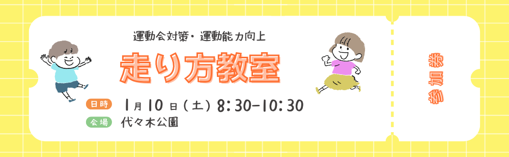 【かけっこスクール】は運動会で頑張りたい。走るのは苦手だけど速く走れるようになりたい。他のスポーツにいかしたい。など速く走れるようになるのはもちろんのこと、ジュニア期に必要な様々なプログラムを取り入れ、総合的に運動能力の向上を目指すクラスです。
